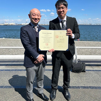 また、卓越した研究業績を挙げた博士課程の大学院生に授与される『大村賞』(北里大学大学院薬学研究科総代)を受賞しました。